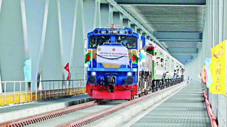 ট্রেনে করে পদ্মা সেতু পার হলেন প্রধানমন্ত্রী
