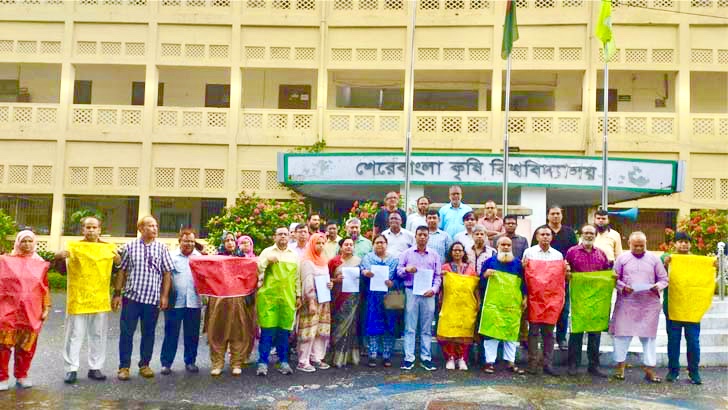 শিক্ষার্থীদের হয়রানির প্রতিবাদে শেকৃবিতে শিক্ষকদের প্রতিবাদ ও মৌন মিছিল